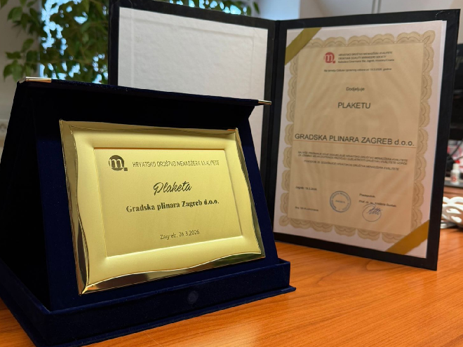 Gradska plinara Zagreb d.o.o. dobitnik plakete Hrvatskog društva menadžera kvalitete